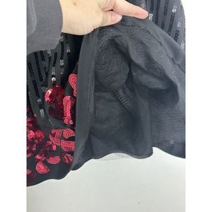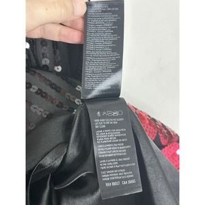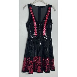 BEBE Black Red SEQUIN Sleeveless Fit And Flare FLARED DRESS Sz XS