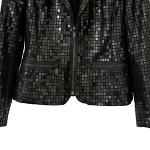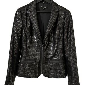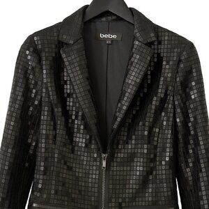 BEBE Black Sequin Tuxedo Blazer Zip Front Size 10 NWOT