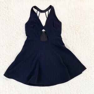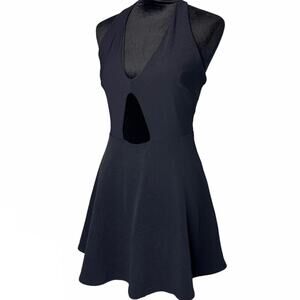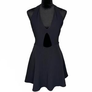 BEBE Black Sexy Cutout Flare Skater Halter Lined Dress size Large