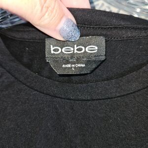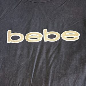 BEBE Black T-shirt with Gold Sequin Logo Size Large