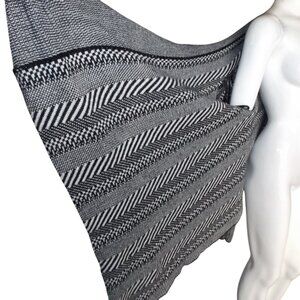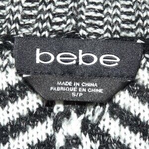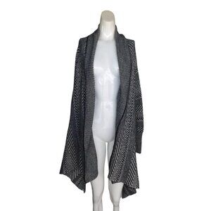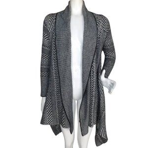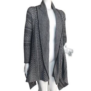 BEBE Cardigan Sweater, S, Geometric/Stripe, Open front, Asymmetric, Shawl collar