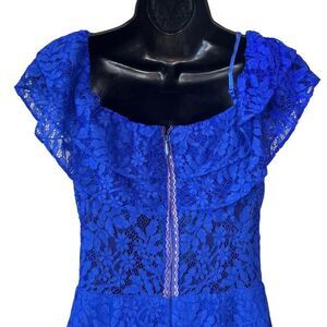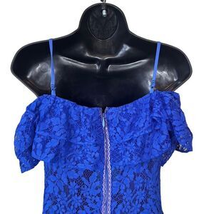 BEBE Cobalt Blue Lace CORSET Inspired Off the Shoulder DRESS