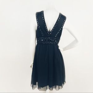 BEBE Dress Embellished Beaded Double V Mini LBD