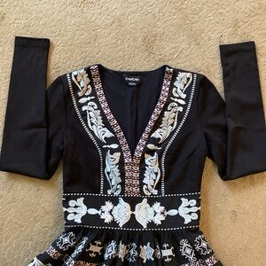 BEBE EMBROIDERED FIT AND FLAIR DRESS WITH SEQUINS SIZE 0