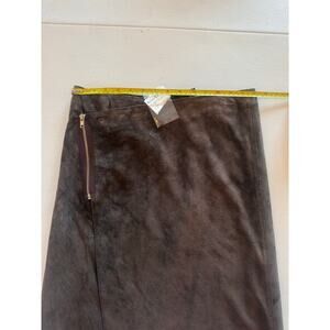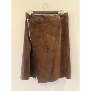 BEBE Genuine Leather NWT Asymmetrical Wrap Look Y2K Zipper Brown Skirt Sz 6, great condition, measurements in pics, ships fast