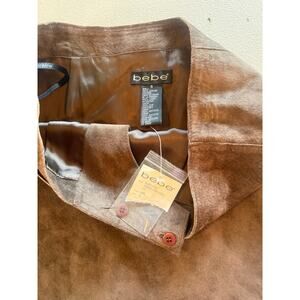 BEBE Genuine Leather NWT Asymmetrical Wrap Look Y2K Zipper Brown Skirt Sz 6