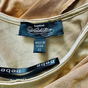 BEBE | Gold Metallic Colorblock Asymmetric Ruched Cocktail Mini Dress Size XS