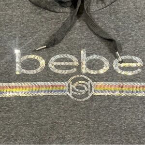 BEBE Gray Rainbow Sequin Logo Crop Plus Size Pullover Hoodie NWT 3XL Extra Large