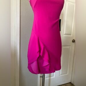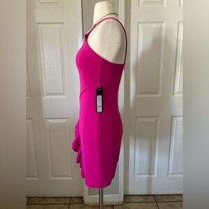 BEBE HALTER ASYMMETRICAL RUFFLE DRESS Yellow Size XS
