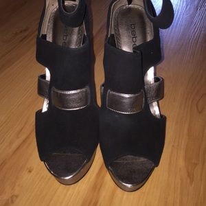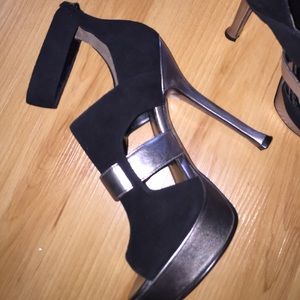 Black Suede Bebe Heels. Worn once. Excellent Condition. No Box Size9