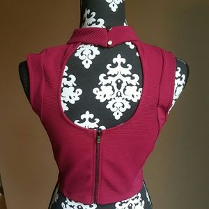 Mock neck w/ metallic gunmetal grey buttons Gunmetal grey zipper on backside