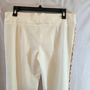 BEBE IVORY NWT PANTS SIZE 10 HAND SEWN SEQUIN FORM TUXEDO STRIPE MADE USA