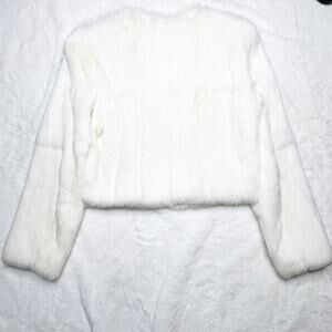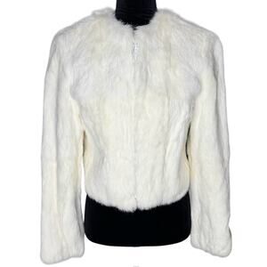 BEBE Ivory Cream Rabbit Fur Cropped Zip-up Jacket Lined Coat size Small