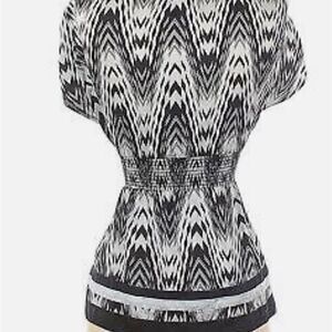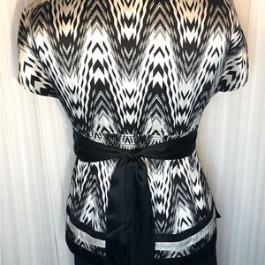 BEBE Kimono Black and White Silk Blouse/Black Silk Previously Owned Size: XS