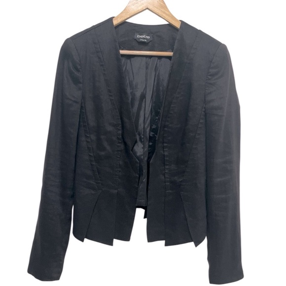 BEBE Linen Blend Black Cropped Pin Tuck Blazer Size 6