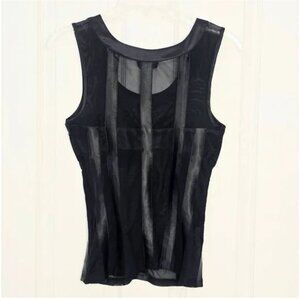 Add a bold and feminine touch to your wardrobe with this striped mesh and satin top. Good condition with normal wear and tear.