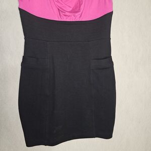 BEBE Mini Dress Womens Small Black And Pink With Sexy Cutout Back Straps. Zip Up