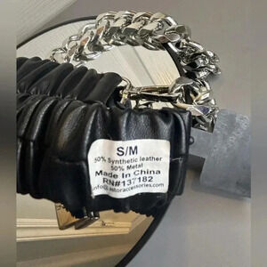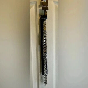 🖤”BEBE” NWT Black Scrunch with Silver Metallic Chain & Emblem Belt Size S/M 🩶
