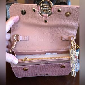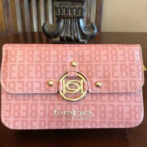 BEBE - NWT - "Kira Logo" Crossbody/Clutch in "Dusty Rose"/Textured Faux Leather