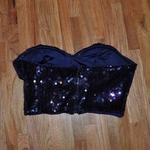 BEBE Navy Blue Sequin Wrap Bustier Crop Top sz L