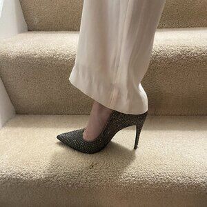 Egret, off white, black lace, wide leg bottom pants, strapless, party, elegant , new.