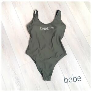 BEBE One Piece Swimsuit Fatigue Green Bathing Suit Size XL Beach Swimwear Summer