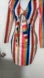 This striking bodycon dress features a bold red and orange color palette, perfect for a night out or cocktail event. The long sleeves and plunge neckline add a touch of elegance, while the notched collar gives it a unique flair.