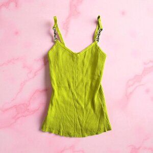 BEBE Ribbed Chain Detail Lime Tank Top Size Medium