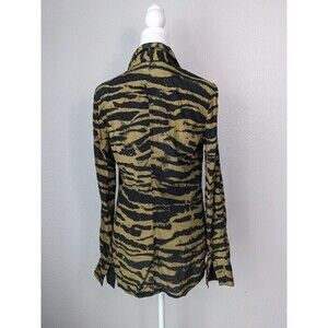 BEBE SILK BUTTON DOWN SHIRT TOP SIZE XS Animal Print Oversized Collared N16