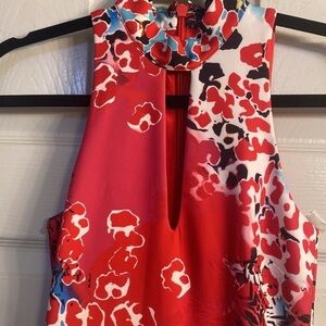 BEBE SLEEVELESS FLORAL PRINT SLEEVELESS LINED DRESS WITH KEYHOLE COLLAR SIZE XXS