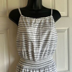 BEBE SMOCKED WAIST HALTER WHITE/BLACK JUMPSUIT SIZE S