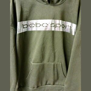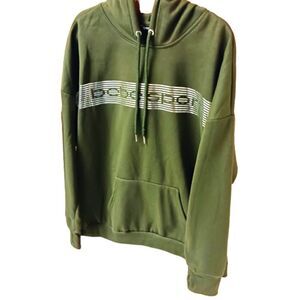 BEBE SPORT Plus Size Women's Forest Green Solid Stripe Logo Hoodie NWT