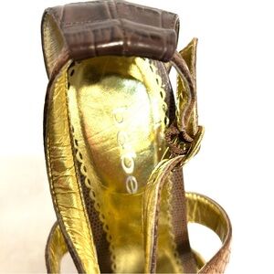 BEBE Sadie Brown Leather Stiletto Heels Open Toe Platform Shoes Sandals Size 8