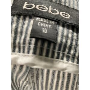 Get ready for a stylish summer in these BEBE sailor striped shorts! The gray and white striped pattern adds a nautical touch, while the spandex and cotton blend fabric ensures comfort and a perfect fit. With a 17 inch waist and 4 inch length, these size 10 shorts are perfect for casual occasions. So get ready to set sail and add these shorts to your wardrobe today!