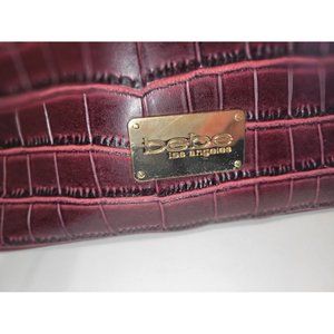 BEBE Shoulder Bag Handbag Purse Burgundy Red Faux Croc leather 10" x 8"