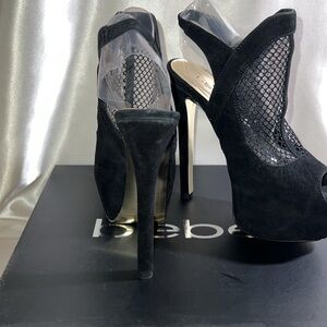 BEBE Suede 6 inch Open Toe Booties Size 6 in Black