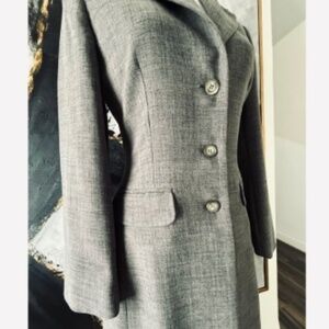 PRE-OWNED BEBE TAILORED GRAY COAT WITH SILK LINING, PURCHASED IN NYC, LITE AND FASHION FORWARD, CAN GO WITH ANY OUTFIT.