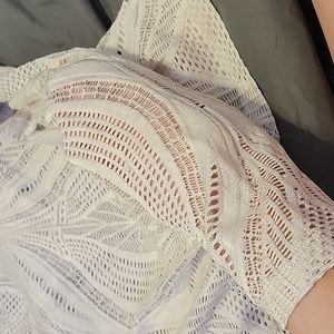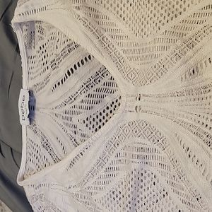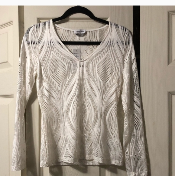 creamy white color long sleeve v neck by BEBE! Sort of a mesh type of design! show a tiny tease of skin!