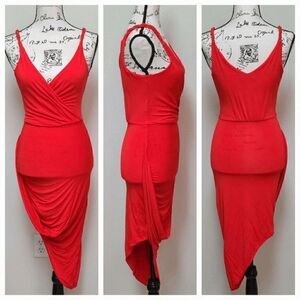 🧡 BEBE Twist Skirt Asymmetrical Hem Grecian Goddess Orange Dress Size XXS/TTP