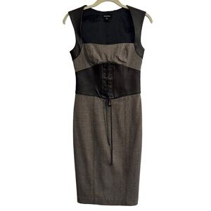 BEBE VINTAGE CORSETED LEATHER TWEED PENCIL DRESS SIZE 4