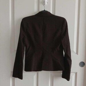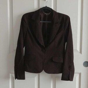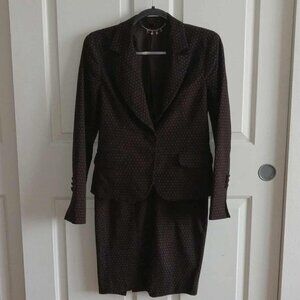 BEBE at its best! You are sure to get stares and complements in this gorgeous brown suit by BEBE. Suit is a rich dark or "city' brown with light tan dots. Jacket has one button closure and is tailored to accentuate the waist. Absolutely gorgeous!