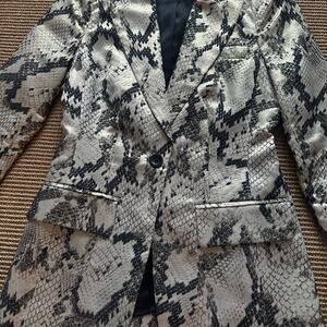 BEBE - Vintage Gold, Cream & Black Snakeskin Blazer w/ Metallic Details - Size 2