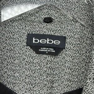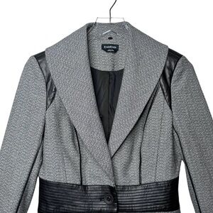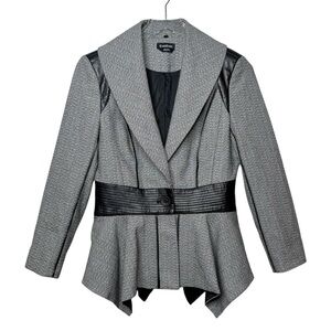BEBE Vintage Gray Faux Vegan Leather Accent 90s Peplum Women’s Blazer Sz 6