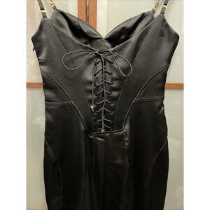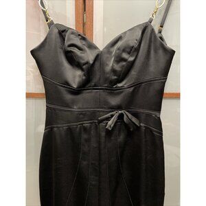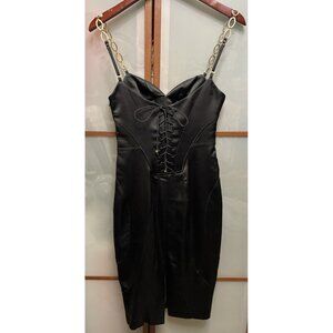 BEBE Vtg Y2K 90s Black Satin Chain Strap Bodycon Corset Pencil Dress Size XS