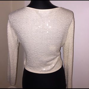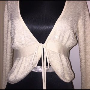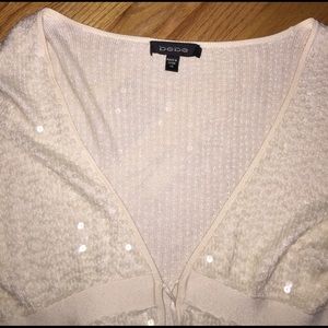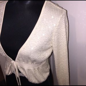 BEBE White Sequin Cropped Silk Cardigan Blazer