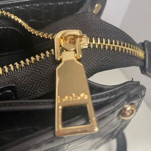 BEBE Women’s Black Bella Croco Medium Satchel with Card Case 9X4X12