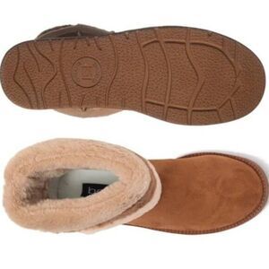 BEBE Women's Faux Fur Trim Boots Size7.5 Embellished Rhinestone Stud Logo