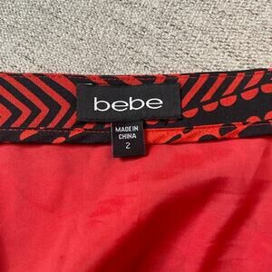 BEBE Wrap Skirt Black Red Patterened Pencil 2 Extra Small Mini Office Work
