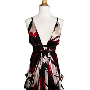BEBE Y2K Draped Silk Maxi Dress Plunging V-Neckline Sleeveless Boho Chic Size S