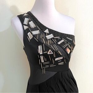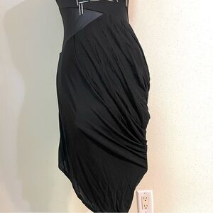 BEBE Y2K Sequins mesh illusion draped black midi dress bodycon women’s size XS